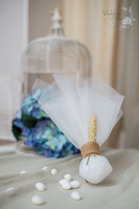 διακοσμημένη με αποξηραμένο στάχυ,σε χρώμα λευκό και ιβουάρ.