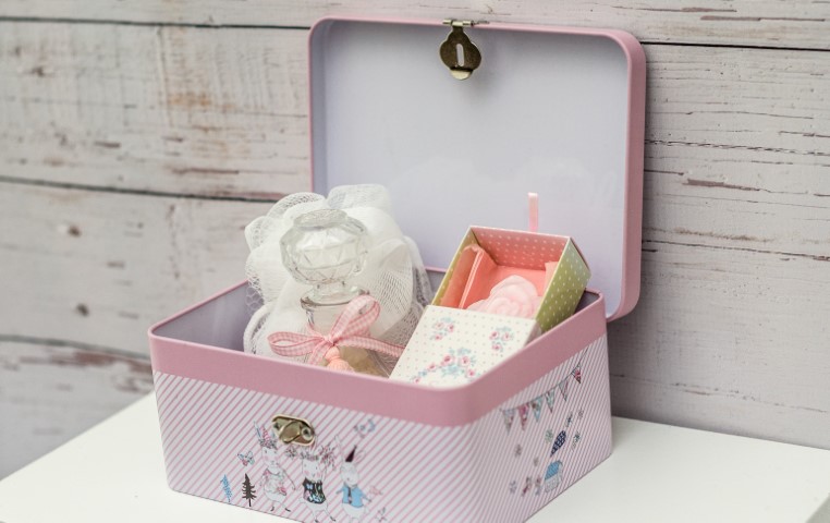 Σετ δώρου σε μεταλλικό κουτί. Περιέχει γυάλινο μπουκαλάκι με άλατα μπάνιου, σφουγγαράκι και κουτί με σαπουνάκια. Διαστάσεις κουτιού: 18 x 13 x 7 εκ.