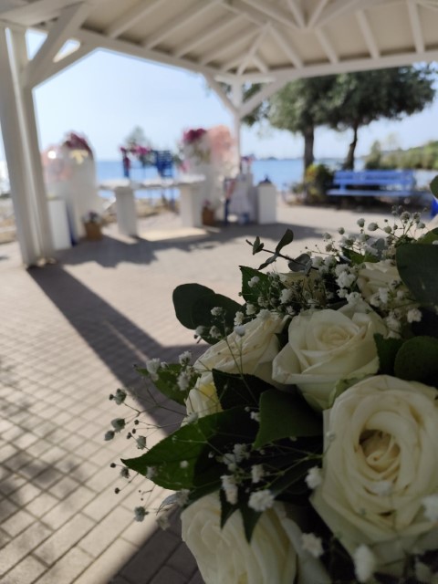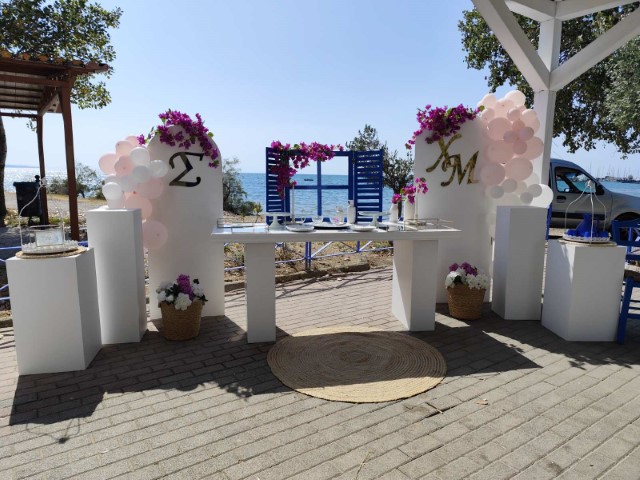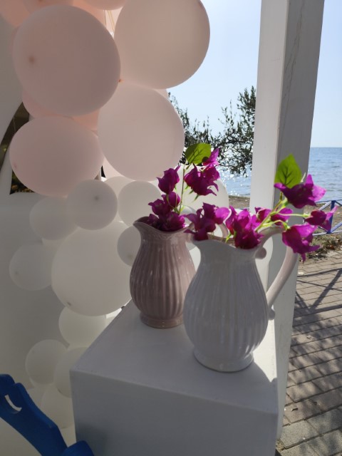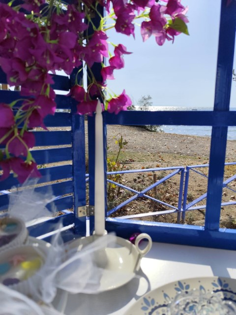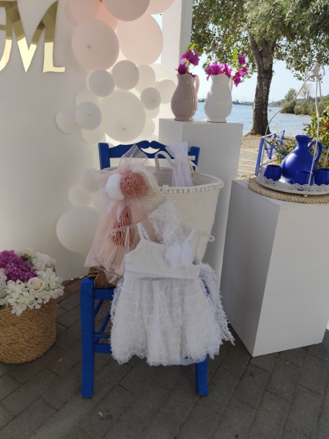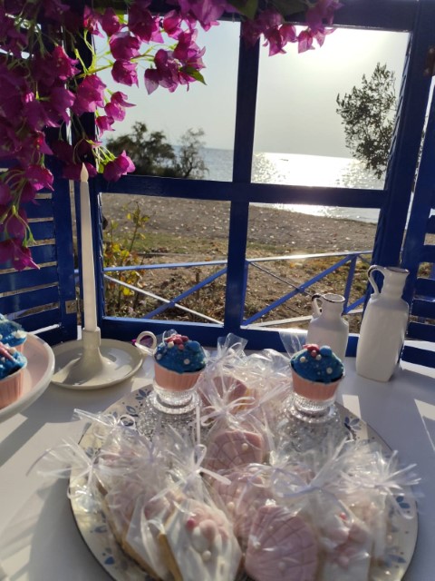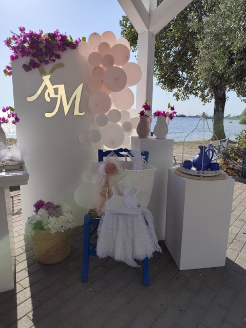 Όμορφο νησιώτικο σκηνικό για τον γάμο της Χριστίνας και του Μάνου και την βάπτισης της κορούλας τους. Απλότητα και κομψότητα με φόντο το γαλάζιο του Αιγαίου.