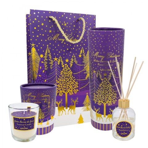 Σετ δώρου αρωματικό χώρου, αρωματικό κερί, με άρωμα winder berries and spices, μαζί με ίδια τσάντα δώρου.
