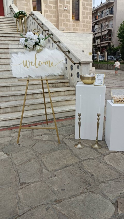 Ένας υπέροχος γάμος που συνδυάζει ρομαντικά και μοντέρνα στοιχεία δημιουργώντας ένα μοναδικό elegant αποτέλεσμα. Εντυπωσιακή διακόσμηση στα σκαλοπάτια και στην είσοδο της εκκλησίας, κρύσταλλα, μουσελίνες, χρυσά στεφάνια και συνθέσεις από ιβουάρ τριαντάφυλλα και ευκάλυπτο, συνθέτουν τον απόλυτο συνδυασμό της απλότητας με την κομψότητα.