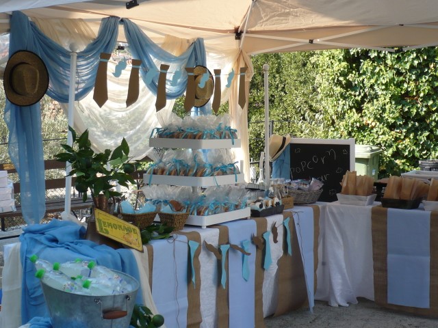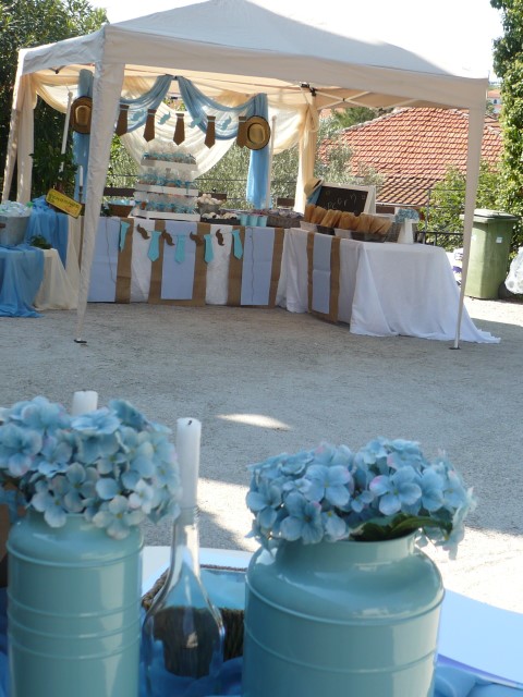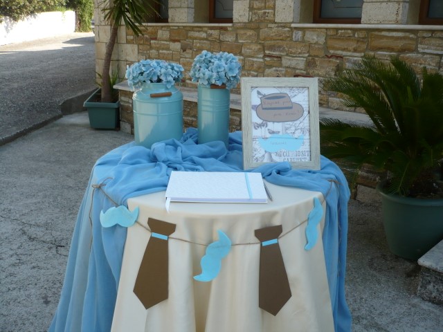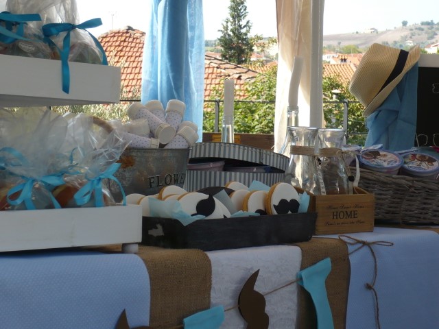 Ιδέες διακόσμησης με θέμα τον μικρό κύριο που σίγουρα θα λατρέψετε! Ένα όμορφο σκηνικό σε αποχρώσεις του σιέλ και του λευκού με κυρίαρχο στοιχείο το κιόσκι με το popcorn bar και το γευστικό candy bar. Ψάθινα καπέλα, γραβάτες και μουστάκια συνδυασμένα με φανάρια, βάζα και υφάσματα δημιουργούν ένα όμορφο αποτέλεσμα που θα κερδίσει τις εντυπώσεις.