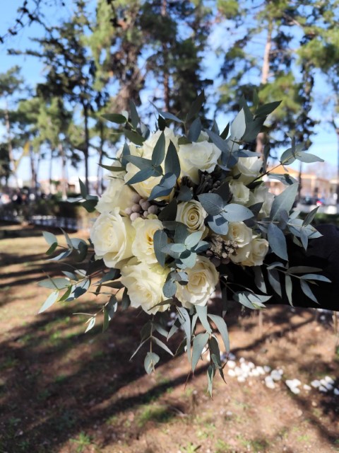Ένας υπέροχος χειμερινός γάμος που συνδυάζει ρομαντικά και μοντέρνα στοιχεία δημιουργώντας ένα μοναδικό elegant αποτέλεσμα. Εντυπωσιακή διακόσμηση στα σκαλοπάτια και στην είσοδο της εκκλησίας, κρύσταλλα, μουσελίνες, χρυσά φαναράκια και συνθέσεις από λευκά τριαντάφυλλα και ευκάλυπτο, συνθέτουν τον απόλυτο συνδυασμό της απλότητας με την κομψότητα.
