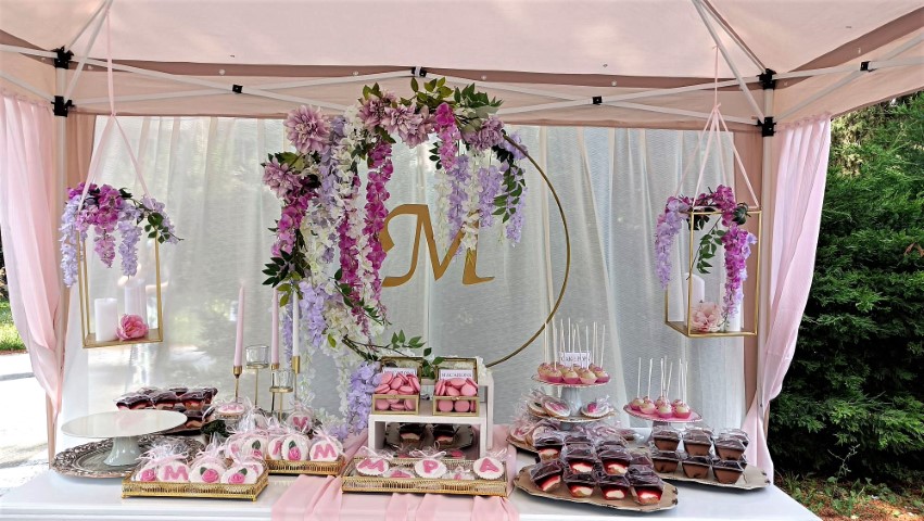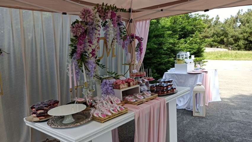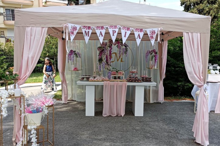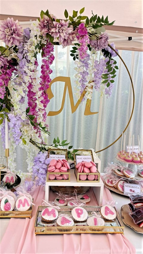 Όμορφος στολισμός βάπτισης με συνθέσεις λουλουδιών σε έντονα ζωηρά χρώματα, διακοσμητικά σε χρυσό χρώμα, αέρινα υφάσματα σε παστέλ ροζ αποχρώσεις, συντέλεσαν σ' ένα μοναδικό γεμάτο φρεσκάδα και ζωντάνια αποτέλεσμα. Μία κομψή πρόταση διακόσμησης που σίγουρα θα εντυπωσιάσει!