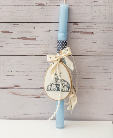 Πασχαλινή λαμπάδα με ξύλινο διακοσμητικό σε σχήμα αυγού.