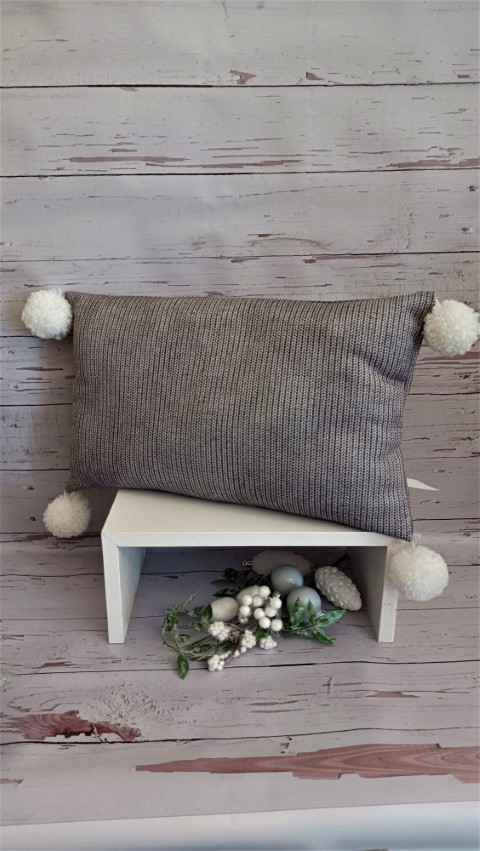 Παραλληλόγραμμο μαξιλάρι με τύπωμα πλεκτό μοτίβο, διακοσμημένο με πομ πομ. Διαστάσεις: 26x42εκ. Δυνατότητα παραγγελίας κατόπιν συνεννοήσεως με το κατάστημά μας. Η γέμιση περιλαμβάνεται στην τιμή.