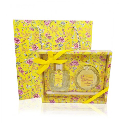 Σετ δώρου σε αποχρώσεις του κίτρινου. Περιέχει αρωματικό κερί  και αρωματικό χώρου  με υπέροχη μυρωδιά wild berry.