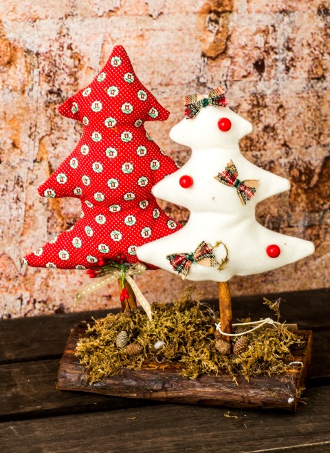 Χριστουγεννιάτικα διακοσμητικά ελατάκια επάνω σε κορμό. Διαστάσεις: ύψος 26 x φάρδος 19 εκ.