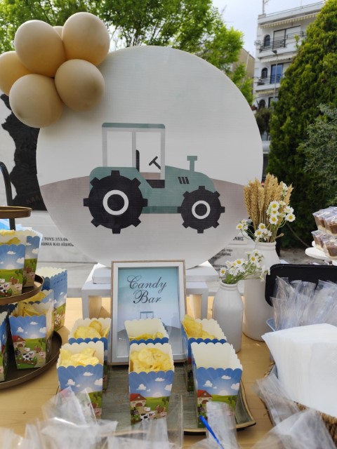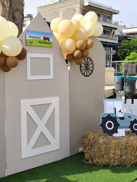 Ο στολισμός βάπτισης με θέμα τη φάρμα δημιουργεί ένα ζεστό και χαρούμενο σκηνικό, εμπνευσμένο από τη φύση και την απλότητα της εξοχής. Φυσικά υλικά, γήινες αποχρώσεις και παιχνιδιάρικα στοιχεία της φάρμας συνδυάζονται αρμονικά, προσφέροντας μία ευχάριστη ατμόσφαιρα. Ένα καλαίσθητο concept που ισορροπεί ανάμεσα στο φυσικό και το μοντέρνο. Ιδανικό για μία ξεχωριστή και αξέχαστη βάπτιση.