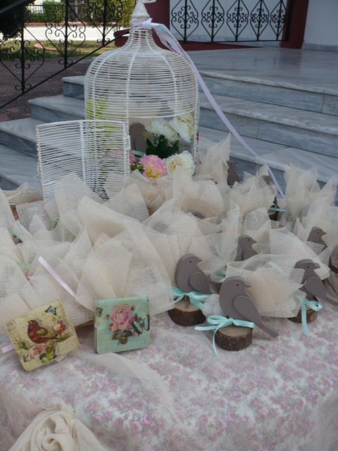 Η βάπτιση που σας παρουσιάζουμε έχει θέμα τα πουλάκια και σας μεταφέρει σε ένα χαρούμενο σκηνικό παστέλ χρωμάτων με διακοσμητικά κλουβιά, υπέροχες συνθέσεις λουλουδιών, οργάντζες και δαντέλες που μαγεύουν τους καλεσμένους σας. Στο κιόσκι στήθηκαν τραπέζια όμορφα στολισμένα που φιλοξένησαν δροσερά αναψυκτικά, γλυκές λιχουδιές και νόστιμα εδέσματα, ενώ οι ξύλινες μπομπονιέρες πουλάκια και τα παιδικά δωράκια εντυπωσίασαν.
