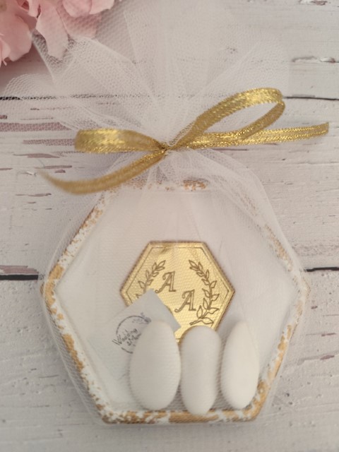 Δεμένη με πέντε κουφέτα αμυγδάλου ή τρία bijoux.