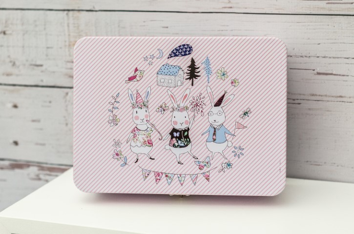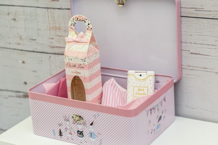 Σετ δώρου σε μεταλλικό κουτί με Πασχαλινή παράσταση. Περιλαμβάνει body mist, σαλιάρα και αντισηπτικό χεριών. Διαστάσεις κουτιού: 21 x 16 x 8 εκ.