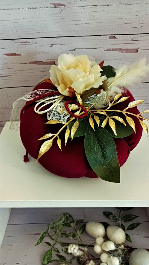 Μεγάλη κολοκύθα κατασκευασμένη από βελούδο ύφασμα σε μπορντό χρώμα. Διαστάσεις: Ύψος 15εκ. x 20εκ.