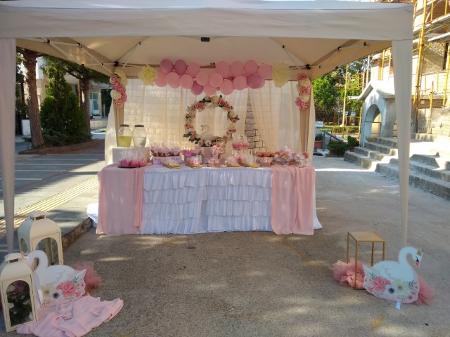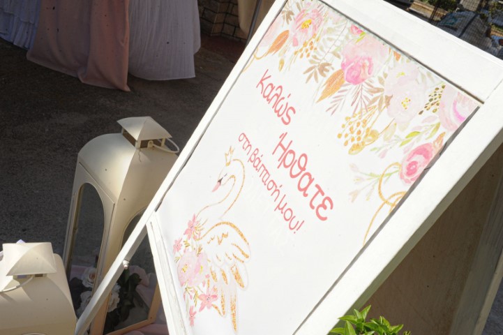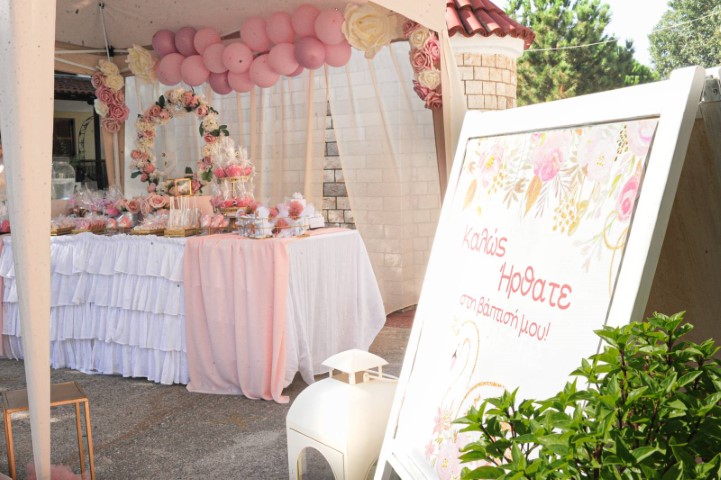 Η βάπτιση που σας παρουσιάζουμε έχει θέμα τον κύκνο και θα σας μεταφέρει σ' ένα σκηνικό παστέλ χρωμάτων, συνθέσεις λουλουδιών, μπαλόνια, φιγούρες κύκνων, αέρινα υφάσματα και όμορφες διακοσμητικές λεπτομέρειες. Στο κιόσκι στήθηκαν τραπέζια που φιλοξένησαν δροσερά αναψυκτικά, γλυκές λυχουδιές και νόστιμα εδέσματα, ενώ οι μπομπονιέρες κύκνοι και τα παιδικά δωράκια εντυπωσίασαν.