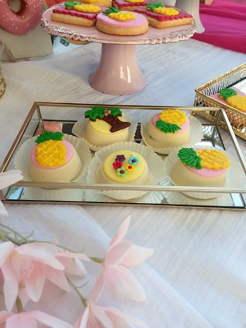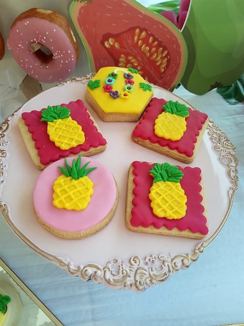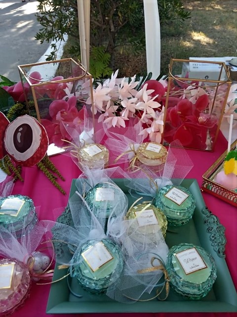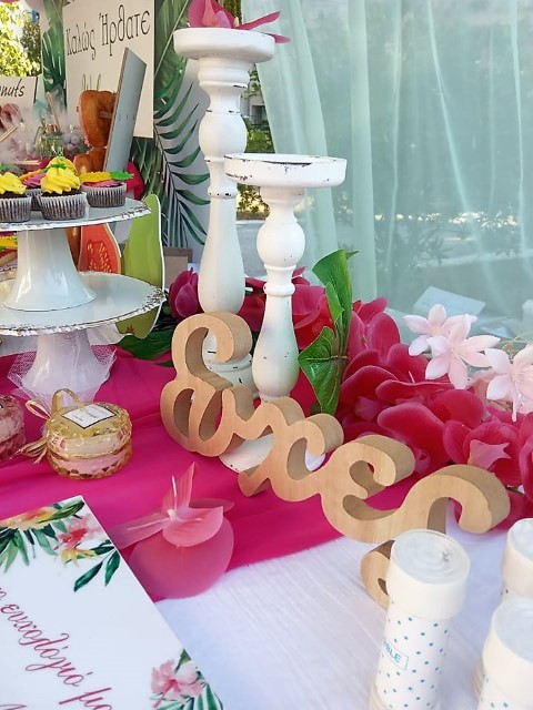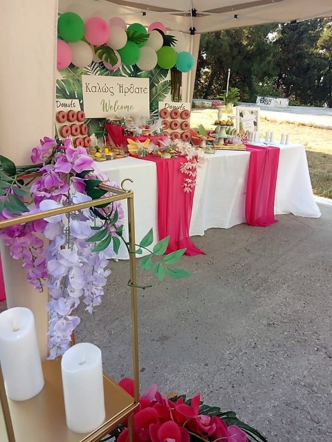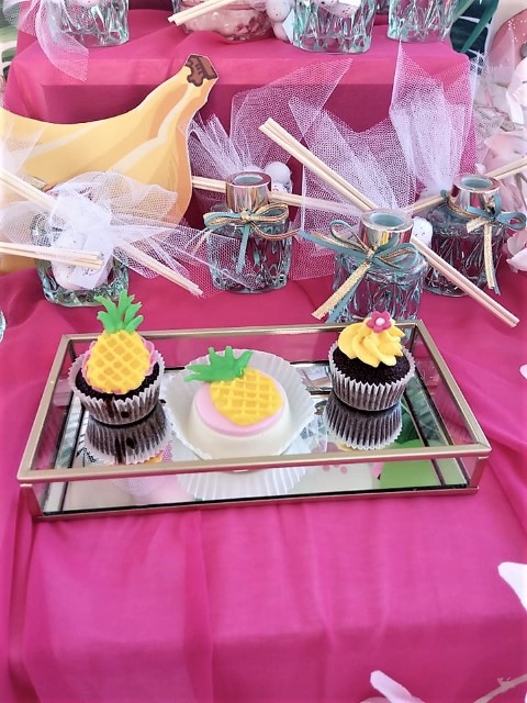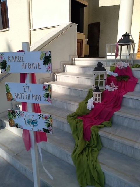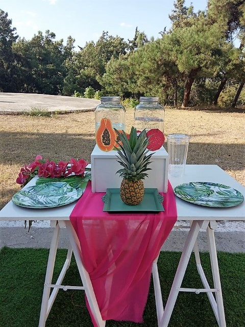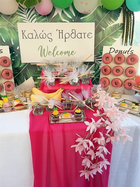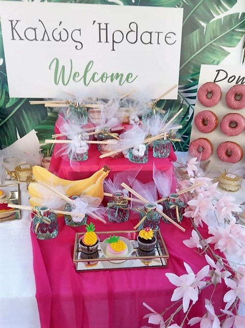 Η χαρούμενη βάπτιση της Αναστασίας είναι γεμάτη ζωντανά χρώματα και παιχνιδιάρικες λεπτομέρειες που μας ταξιδέυουν στις ανέμελες ημέρες του καλοκαιριού. Ιδιαίτερες μπομπονιέρες αρωματικά χώρου και κεράκια σε υπέροχα χρωματιστά βαζάκια και πεντανόστιμα γλυκά, όλα συνδυασμένα αρμονικά με το θέμα. Ένα μεγάλο banner με φύλλα μονστέρας καλωσορίζει τους καλεσμένους, τροπικά φρούτα, λουλούδια και όμορφα διακοσμητικά στοιχεία δημιουργούν μία μοναδική ατμόσφαιρα που εντυπωσιάζει!