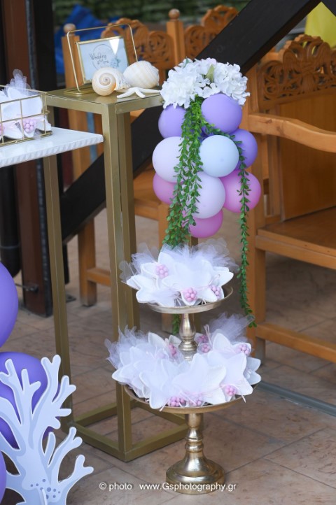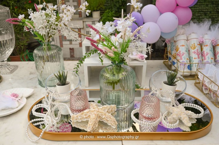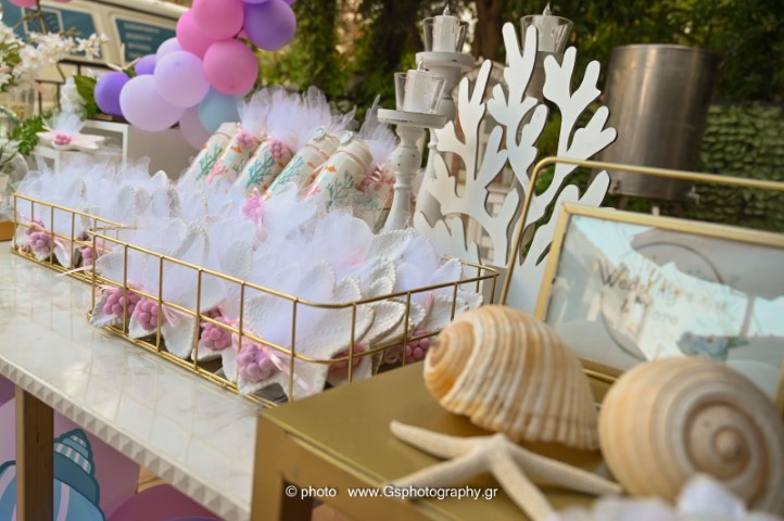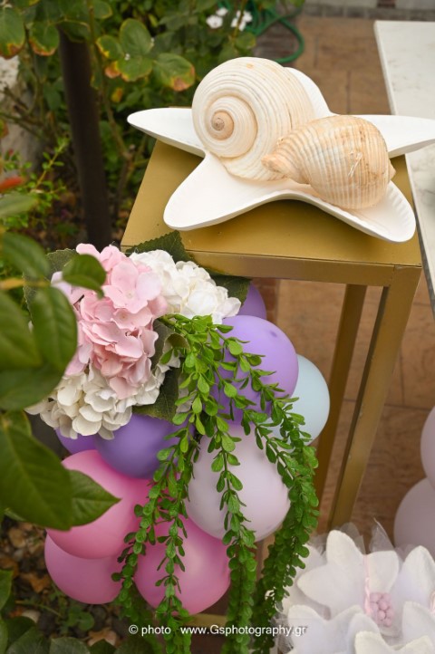 Ο στολισμός βάπτισης για κορίτσι με θέμα τον βυθό δημιουργεί έναν μαγικό, παραμυθένιο κόσμο γεμάτο χρώμα και φαντασία. Ροζ, μωβ και τιρκουάζ αποχρώσεις συνδυάζονται με κοχύλια, αστερίες και θαλάσσια στοιχεία προσφέροντας μία τρυφερή και ονειρική ατμόσφαιρα. Κάθε λεπτομέρεια είναι σχεδιασμένη με αγάπη, για να χαρίσει μία αξέχαστη εμπειρία σ' έσας και στους καλεσμένους σας.