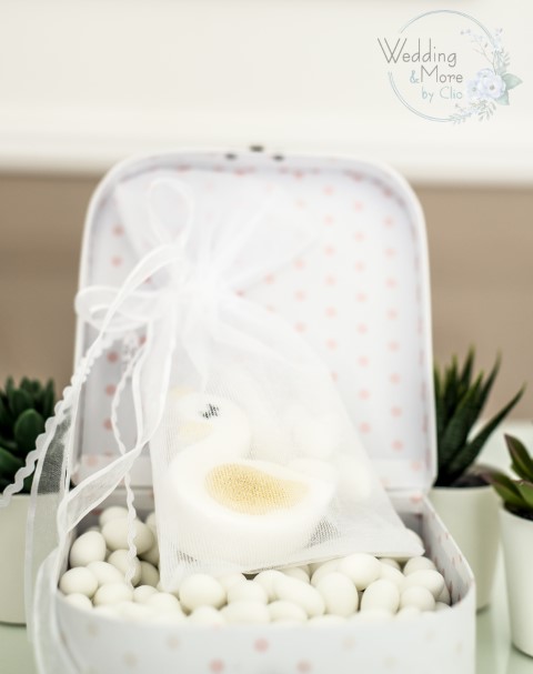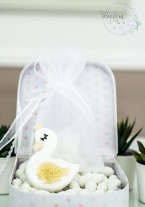 Μπομπονιέρα βάπτισης για κορίτσι σαπουνάκι κύκνος