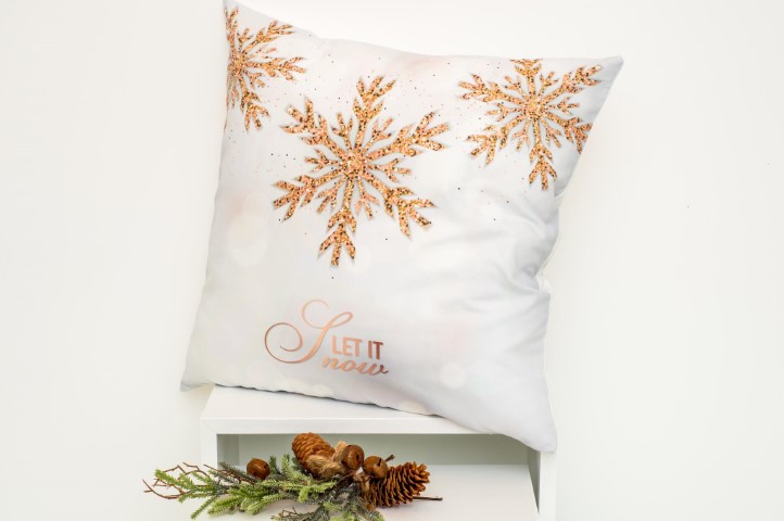 Διακοσμητική μαξιλαροθήκη σε λευκό χρώμα με χιονονιφάδες και μήνυμα "let it snow". Διστάσεις: 43x43εκ. Σύνθεση: 100% polyester. Η γέμιση δεν περιλαμβάνεται στην τιμή (κόστος γέμισης 4ευρώ).