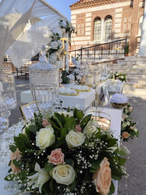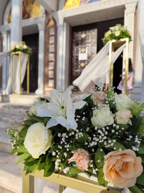 Ένας υπέροχος γάμος που συνδυάζει ρομαντικά και μοντέρνα στοιχεία δημιουργώντας ένα μοναδικό elegant αποτέλεσμα. Εντυπωσιακή διακόσμηση στα σκαλοπάτια και στην είσοδο της εκκλησίας, κρύσταλλα, μουσελίνες, χρυσά στεφάνια και συνθέσεις με ευκάλυπτο και λουλούδια σε παστέλ αποχρώσεις, συνθέτουν τον απόλυτο συνδυασμό της απλότητας με την κομψότητα.