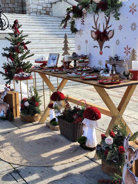 Μέσα στη μαγεία των Χριστουγέννων ένα μικρό ελαφάκι γίνεται ο πρωταγωνιστής μιας ξεχωριστής βάπτισης. Η διακόσμηση κινείται σε γήινους χειμωνιάτικους τόνους, με πινελιές από λευκό, μπορντό, μπεζ, καφέ και χρυσό, ενώ χριστουγεννιάτικα στοιχεία όπως έλατα, κουκουνάρια και διακοσμητικά στοιχεία δημιουργούν μία ατμόσφαιρα παραμυθιού.